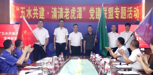 6月29日,中環(huán)水務(wù)黨委下屬湖州中環(huán)黨總支和湖州市水利局直屬機關(guān)黨委、吳興區(qū)埭溪鎮(zhèn)黨委、德清縣莫干山鎮(zhèn)黨委正式簽約共建湖州市首個護水黨建聯(lián)盟——“五水共建·清清老虎潭”黨建聯(lián)盟。 簽約活動中,包括湖州中環(huán)黨總支所屬湖州原水黨支部、湖州中環(huán)黨支部在內(nèi)的9個支部與周邊9個村分別結(jié)對簽約。黨員代表接過科普宣傳先鋒、巡庫保安先鋒、守護清水先鋒三面旗幟,展現(xiàn)出“守好大水缸 走好共富路”的堅定決心。 由中環(huán)水務(wù)投資建設(shè)運營的老虎潭水庫及引水工程供水范圍覆蓋吳興區(qū)和南潯區(qū)大部分區(qū)域,是湖州人民生產(chǎn)生活名副其實的“大水缸”。保護老虎潭水庫生態(tài)環(huán)境、提高庫區(qū)水質(zhì),事關(guān)湖城居民飲水安全,使命艱巨、責任重大?!拔逅步āで迩謇匣⑻丁秉h建聯(lián)盟涉及“若水”、“護水”、“清水”、“廉水”、“樂水”五個方面的工作,聚焦“清水”與“清廉”兩個重點,以政企合作、市鎮(zhèn)聯(lián)動、村級參與為特色,將為老虎潭水庫的保護與發(fā)展提供優(yōu)質(zhì)的交流協(xié)作平臺,營造全民護水的濃郁氛圍。