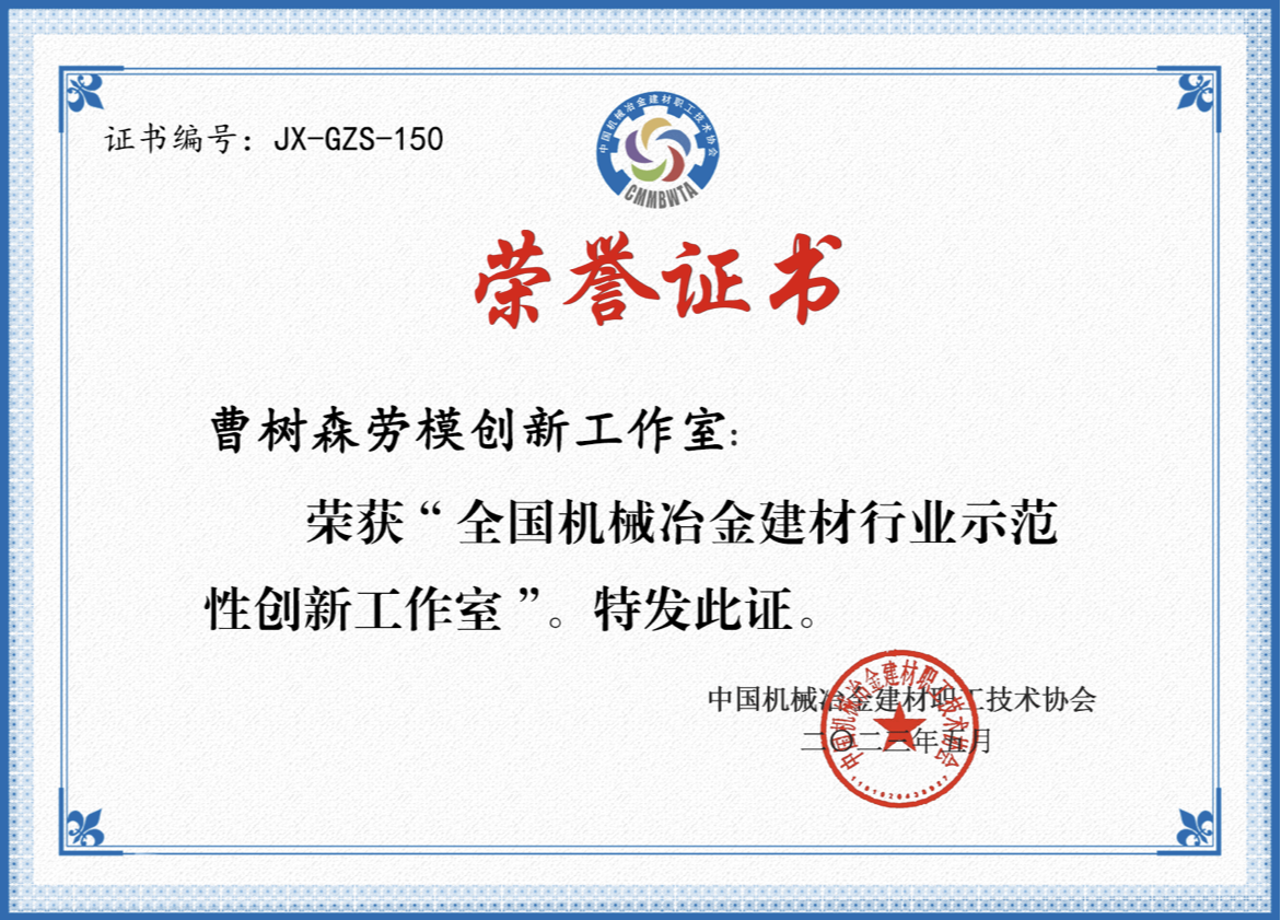 喜訊!中環(huán)裝備下屬啟源裝備“曹樹(shù)森勞模創(chuàng)新工作室”被命名為“全國(guó)機(jī)械冶金建材行業(yè)示范性創(chuàng)新工作室” |