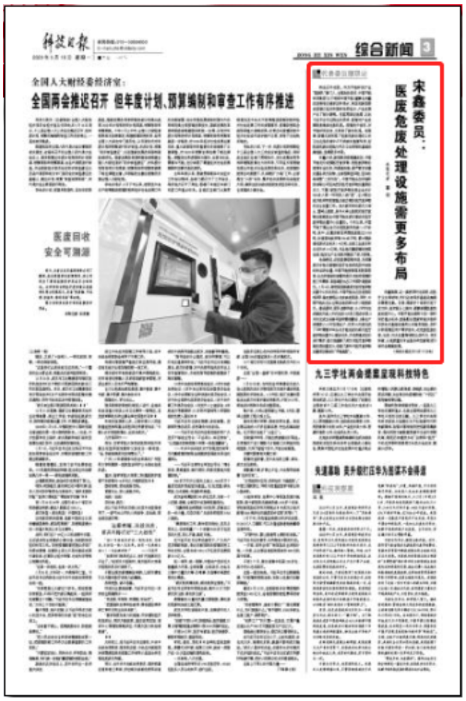 5.【新華社客戶端】全國政協(xié)委員宋鑫:讓垃圾分類常態(tài)有處理、應(yīng)急有保證、保底有工程 6.【新華社客戶端】全國政協(xié)十三屆三次會議第二場“委員通道” https://xhpfmapi.zhongguowangshi.com/vh512/scene/9121590?channel=weixinp&from=timeline 7.【新華社】宋鑫委員:醫(yī)廢危廢處理能力亟需增強(qiáng) https://xhpfmapi.zhongguowangshi.com/vh512/share/9118577?channel=weixin 8.【新華社】兩會·聲音|全國政協(xié)委員宋鑫:做生態(tài)文明建設(shè)的“環(huán)保衛(wèi)士” https://xhpfmapi.zhongguowangshi.com/vh512/share/9122612?channel=weixin 9.【新華社快看】全國政協(xié)委員宋鑫:支持我國南方地區(qū)實(shí)行區(qū)域集中供暖 10.【光明日報】改革勁頭不松 發(fā)展目標(biāo)不減 http://epaper.gmw.cn/gmrb/html/2020-05/20/nw.D110000gmrb_20200520_5-08.htm 11.【經(jīng)濟(jì)日報】宋鑫委員:節(jié)能環(huán)保企業(yè)要緊抓機(jī)遇促發(fā)展 https://proapi.jingjiribao.cn/detail.html?id=259774 12.【經(jīng)濟(jì)日報】全國政協(xié)委員宋鑫:醫(yī)廢危廢處理能力需更多布局 http://paper.ce.cn/jjrb/html/2020-05/24/content_419712.htm 13.【經(jīng)濟(jì)日報客戶端】全國政協(xié)委員宋鑫:醫(yī)廢危廢處理能力需更多布局 https://proapi.jingjiribao.cn/readnews.html?id=115794 14.【經(jīng)濟(jì)日報大風(fēng)號】宋鑫委員:清潔供暖就是冬天里的火盆子、熱風(fēng)扇、熱水袋 | 兩會發(fā)布 http://finance.ifeng.com/c/7wjEVPMishl 15.【中國日報微信公眾號】“南方供暖”沖上熱搜,這些建議被網(wǎng)友點(diǎn)贊! https://mp.weixin.qq.com/s/xixHlrEB_43qRd_cxBp4mQ 16.【科技日報】宋鑫委員:醫(yī)廢危廢處理設(shè)施需更多布局 17.【科技日報微博】全國政協(xié)委員就#南方供暖#在委員通道答科技日報記者問 https://weibo.com/3515639462/J3nife9dS?refer_flag=1001030103_&type=comment 18.【農(nóng)民日報】因地制宜推進(jìn)農(nóng)村清潔供暖——訪全國政協(xié)委員,中國節(jié)能環(huán)保集團(tuán)有限公司黨委書記、董事長宋鑫 http://szb.farmer.com.cn/2020/20200525/20200525_006/20200525_006_6.htm 19.【學(xué)習(xí)強(qiáng)國-全國政協(xié)】全國政協(xié)十三屆三次會議第二場“委員通道” 20.【學(xué)習(xí)強(qiáng)國-新華社】暖暖的民生溫度 滿滿的發(fā)展信心——全國政協(xié)十三屆三次會議第二場“委員通道”掃描 21.【人民政協(xié)報】脫貧攻堅(jiān) 央企力量 http://rmzxb.bzzb.tv/shareart_3151282_5.html?from=groupmessage 22.【人民政協(xié)報】中國節(jié)能:在共克時艱中展現(xiàn)央企責(zé)任擔(dān)當(dāng) http://dzb.rmzxb.com/index.aspx?date=2020-05-23&verOrder=15&banzi=14&paperType=rmzxb 23.【人民網(wǎng)】宋鑫委員:推廣清潔供暖 南方也能暖起來 http://lianghui.people.com.cn/2020cppcc/n1/2020/0524/c432428-31721071.html 24.【人民網(wǎng)】宋鑫委員:清潔能源推廣勢在必行 http://env.people.com.cn/n1/2020/0524/c1010-31721160.html?from=singlemessage&isappinstalled=0 25.【人民網(wǎng)】心里有火 眼中有光——全國政協(xié)十三屆三次會議第二場“委員通道”綜述 http://lianghui.people.com.cn/2020cppcc/n1/2020/0524/c432428-31721233.html 26.【人民網(wǎng)】宋鑫委員:助力打好污染防治攻堅(jiān)戰(zhàn) 提高生態(tài)環(huán)境治理成效 http://env.people.com.cn/n1/2020/0527/c1010-31725303.html 27.【新華網(wǎng)】全國政協(xié)十三屆三次會議第二場“委員通道” http://www.xinhuanet.com/politics/2020lh/zb/dbwy/dbwy3/index.htm 28.【新華網(wǎng)】宋鑫:清潔供暖方式既節(jié)約能源 還可以讓百姓少花錢 http://www.xinhuanet.com/video/2020-05/24/c_1210631536.htm 29.【新華網(wǎng)】宋鑫:建立可持續(xù)的生態(tài)產(chǎn)品價值實(shí)現(xiàn)機(jī)制 http://www.xinhuanet.com/energy/2020-05/24/c_1126025703.htm 30.【新華網(wǎng)客戶端百家號】啟征黃金增值稅?宋鑫委員直言:損失巨大 得不償失! https://baijiahao.baidu.com/s?id=1667930716312937088&wfr=spider&for=pc 31.【中國報道】宋鑫委員:在大戰(zhàn)大考中積極發(fā)揮央企的主力軍、生力軍作用 http://www.chinareports.org.cn/djbd/2020/0522/14896.html 32.【中國報道百家號】專訪全國政協(xié)委員、中國節(jié)能環(huán)保集團(tuán)有限公司董事長宋鑫 https://baijiahao.baidu.com/s?id=1667361730206569978&from=singlemessage 33.【中國網(wǎng)】宋鑫委員:在大戰(zhàn)大考中積極發(fā)揮央企的主力軍、生力軍作用 http://www.china.com.cn/lianghui/news/2020-05/22/content_76077409.shtml?from=singlemessage 34.【中國網(wǎng)】宋鑫:清潔供暖若全部實(shí)施 節(jié)能相當(dāng)于植樹造林36萬畝 http://t.m.china.com.cn/convert/c_w8YtxXjv.html?from=singlemessage 35.【中國網(wǎng)】中國訪談丨宋鑫委員:央企發(fā)揮產(chǎn)業(yè)鏈中核心作用,帶動上下游企業(yè)復(fù)工復(fù)產(chǎn) http://m.china.com.cn/wm/doc_1_474303_1632796.htmld?from=singlemessage&isappinstalled=0 36.【中國網(wǎng)】宋鑫委員:1億平方米建筑用清潔供暖可節(jié)約標(biāo)準(zhǔn)煤66萬噸 http://www.china.com.cn/lianghui/news/2020-05/24/content_76082760.shtml 37.【中國網(wǎng)《中國訪談》】宋鑫委員:央企發(fā)揮產(chǎn)業(yè)鏈中核心作用,帶動上下游企業(yè)復(fù)工復(fù)產(chǎn) http://m.china.com.cn/wm/doc_1_474303_1632796.htmld 38.【中國網(wǎng)財經(jīng)】全國政協(xié)委員宋鑫:支持我國南方地區(qū)實(shí)行區(qū)域集中供能 http://finance.china.com.cn/news/special/lianghui2020/20200521/5278418.shtml 39.【北京