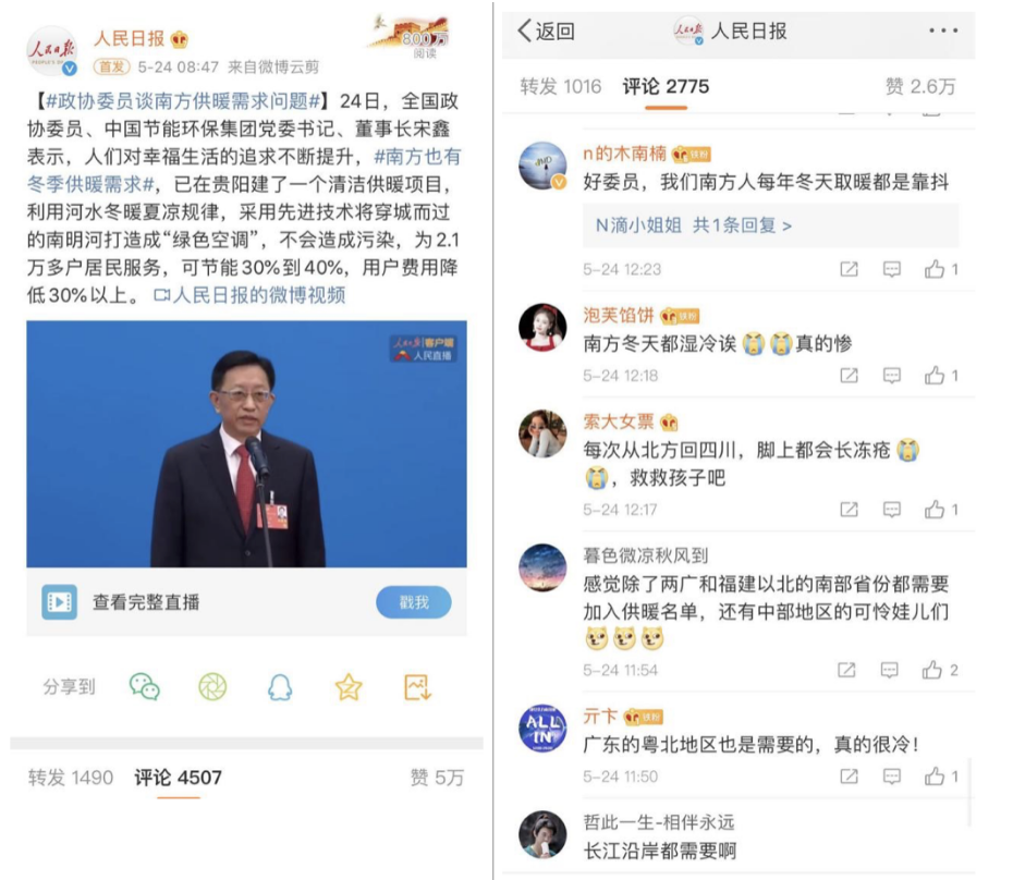 媒體報道鏈接合集 1.【國務(wù)院新聞辦公室網(wǎng)站】宋鑫委員:推廣清潔供暖 南方也能暖起來 http://www.scio.gov.cn/ztk/dtzt/42313/43090/43095/Document/1681040/1681040.htm 2.【人民日報客戶端】決勝全面小康 我們有底氣 https://wap.peopleapp.com/article/5519497/5440075 3.【人民日報微博】南方也有機(jī)會用暖氣!政協(xié)委員談南方供暖需求問題 https://wap.peopleapp.com/article/5526999/5447436?from=timeline&isappinstalled=0 4.【人民日報微博】政協(xié)委員談南方供暖需求問題 https://m.weibo.cn/2803301701/4508028755685546