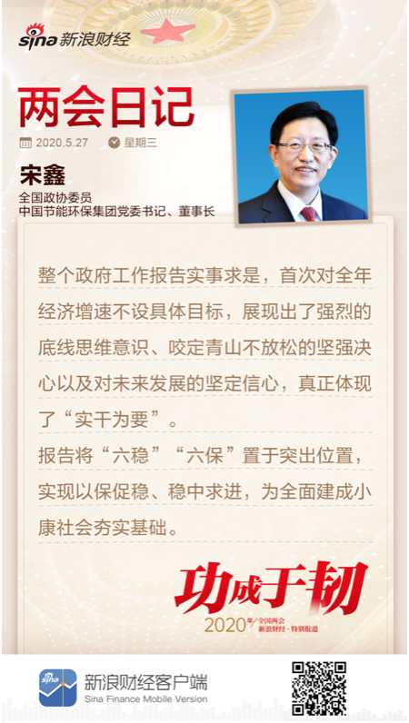 96.【澎湃新聞】第一組委員亮相,接受媒體提問 https://m.thepaper.cn/newsDetail_forward_7539249 97.【澎湃新聞】宋鑫委員:1億平方米建筑用清潔供暖可節(jié)約標(biāo)準(zhǔn)煤66萬噸 https://news.sina.cn/2020-05-24/detail-iirczymk3236361.d.html?from=wap 98.【吉林廣播網(wǎng)】宋鑫委員:推廣清潔供暖南方也能暖起來 https://www.jlradio.cn/html/2838/2020/5/24/368740.html 99.【看看新聞】宋鑫委員:采用清潔供暖每年可節(jié)省能源66萬噸 https://baijiahao.baidu.com/s?id=1667531226355774983&wfr=spider&for=pc 100.【新京報】委員通道丨宋鑫:可利用江河湖泊推廣清潔能源供暖 https://m.sohu.com/a/397295078_114988/?pvid=000115_3w_a 101.【新京報百家號】南方供暖?東北看雪?第二場“委員通道”干貨拿去 https://baijiahao.baidu.com/s?id=1667536459838845168&wfr=spider&for=pc 102.【北京青年報北京頭條客戶端】全國政協(xié)委員宋鑫:清潔供暖就是冬天里的火盆子、熱風(fēng)扇、熱水袋 https://app.bjtitle.com/8816/newshow.php?newsid=5631818&mood=wx&typeid=91&ntype=0 103.【齊魯網(wǎng)】聚焦全國兩會|政協(xié)委員宋鑫談“污染防治攻堅(jiān)”:清潔能源推廣勢在必行 http://m.iqilu.com/pcarticle/4550830 104.【上海證券報】全國政協(xié)委員宋鑫:清潔能源的推廣勢在必行 https://bm.cnfic.com.cn/share/index.html#/share/articleDetail/1876915/1 105.【中國環(huán)境報】長江流淌著多少產(chǎn)業(yè)機(jī)會?環(huán)境綜合治理、智慧環(huán)??臻g大,大型環(huán)保企業(yè)已全面布局 http://epaper.cenews.com.cn/html/2020-05/28/content_94416.htm