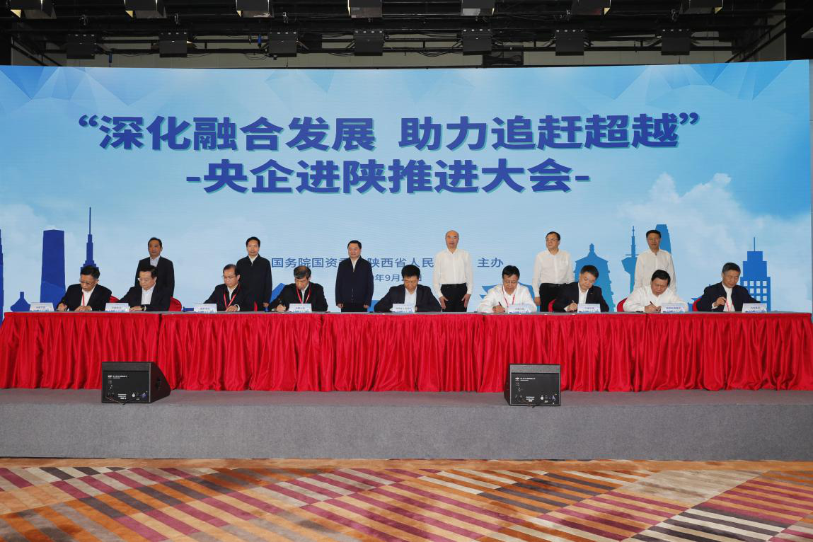 9月26日,國務(wù)院國資委、陜西省人民政府在陜西西安舉辦“深化央地融合 助力追趕超越”央企進(jìn)陜推進(jìn)大會。國務(wù)院國資委黨委書記、主任郝鵬,陜西省委書記、省人大常委會主任劉國中出席會議并講話。陜西省委副書記、省長趙一德主持會議。