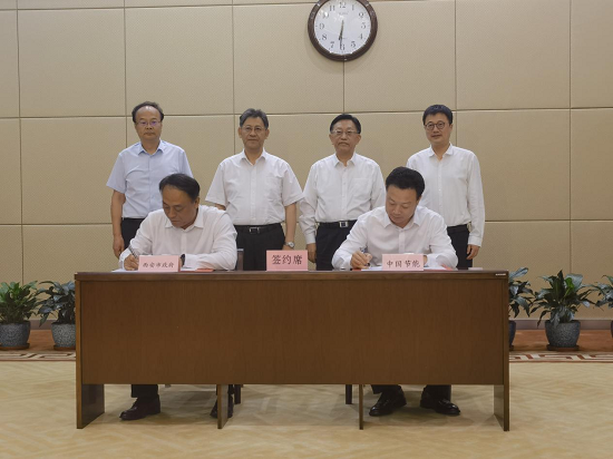 8月9日,中國節(jié)能與西安市人民政府在西安市簽署戰(zhàn)略合作協(xié)議。集團公司黨委書記、董事長宋鑫,陜西省西安市委副書記、市長葉牛平出席簽約儀式。集團公司黨委常委、副總經(jīng)理曹華斌,西安市委常委、常務(wù)副市長呂來升代表雙方簽約。