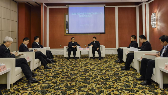 中國節(jié)能黨委書記、董事長宋鑫(左2)與錦州市委書記劉克武(右2)進行座談