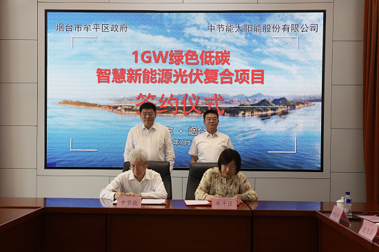 7月12日,集團公司所屬太陽能公司與煙臺市牟平區(qū)政府簽署1GW綠色低碳智慧新能源光伏復(fù)合項目合作協(xié)議,集團公司黨委副書記、總經(jīng)理劉家強,煙臺市牟平區(qū)委副書記、區(qū)長李劍出席簽約儀式。太陽能公司董事長、總經(jīng)理張會學(xué),牟平區(qū)副區(qū)長孫輝代表雙方簽署協(xié)議。