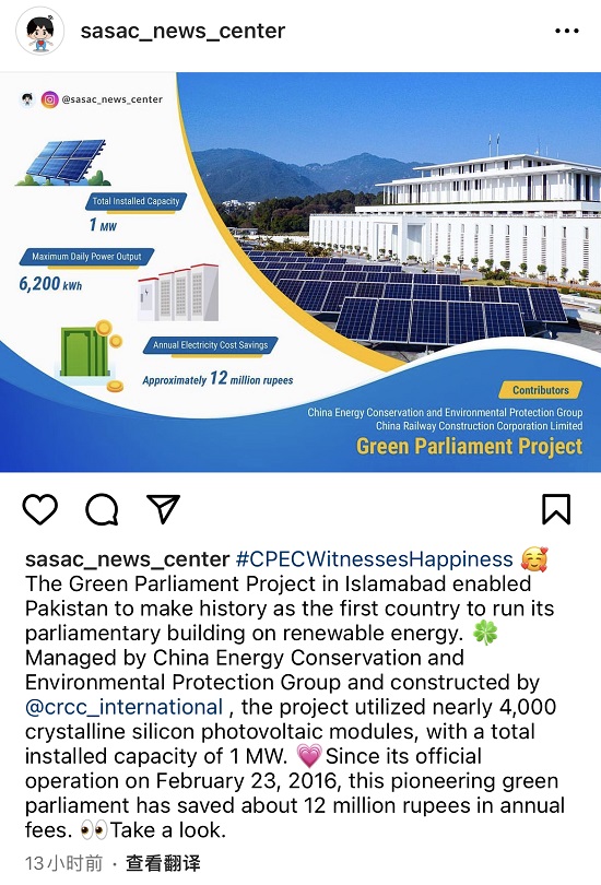 國(guó)資小新:Instagram報(bào)道中國(guó)節(jié)能援巴基斯坦項(xiàng)目情況