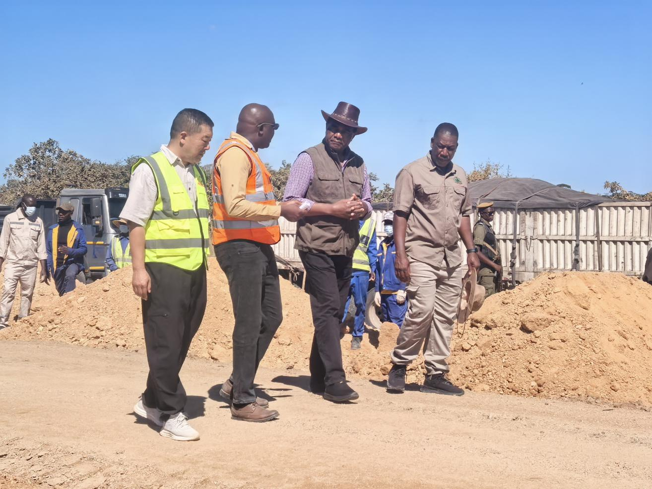 當(dāng)?shù)貢r(shí)間5月20日上午,贊比亞總統(tǒng)Mr.Hakainde Hichilema閣下赴中國(guó)地質(zhì)承建的Batoka-Maamba 88Km項(xiàng)目視察。