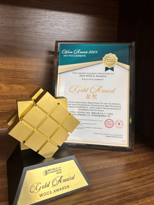 近日,中國啟源承擔(dān)設(shè)計的特變電工西安科技產(chǎn)業(yè)園三期3A廠房防靜電耐磨地坪工程項目榮獲2024WOCA亞洲地坪獎金獎。