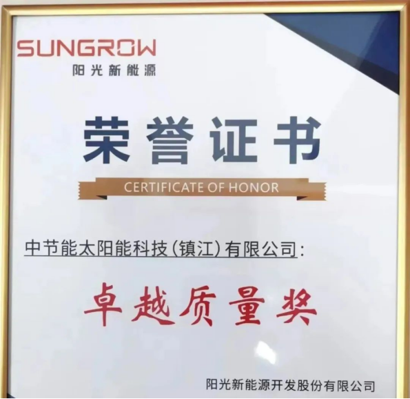 【能力提升年】中節(jié)能太陽能鎮(zhèn)江公司榮獲陽光新能源“卓越質量獎” |