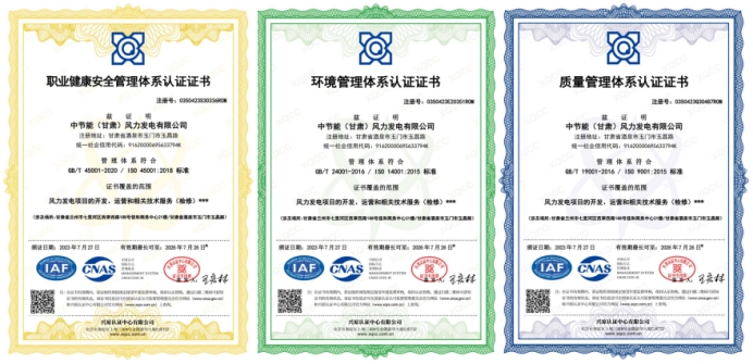 中節(jié)能(甘肅)風力發(fā)電有限公司順利通過“三標一體”體系認證 |