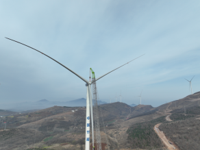 3月27日,中節(jié)能嵩縣九皋鎮(zhèn)風(fēng)電場項(xiàng)目首臺風(fēng)機(jī)吊裝完成,工程建設(shè)按下“快進(jìn)鍵”,項(xiàng)目邁入主體工程建設(shè)與設(shè)備安裝的雙向疊加階段。