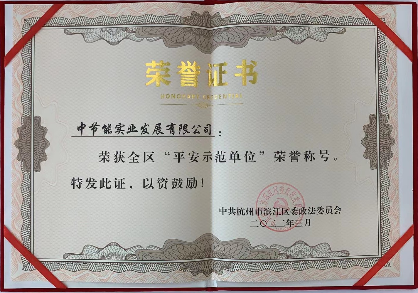 中節(jié)能實(shí)業(yè)公司榮獲杭州高新區(qū)(濱江)平安示范單位榮譽(yù)稱號(hào) |