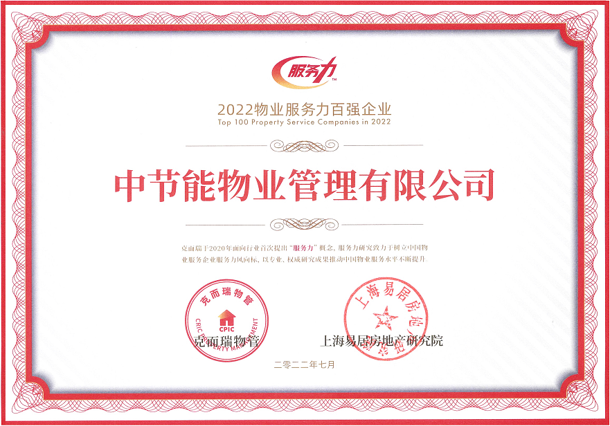 中節(jié)能實(shí)業(yè)公司所屬物業(yè)公司榮膺“2022物業(yè)服務(wù)力百強(qiáng)企業(yè)”及“2022園區(qū)物業(yè)服務(wù)力TOP10企業(yè)”兩項(xiàng)殊榮 |