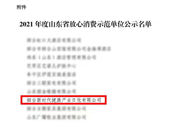 新時代集團(tuán)下屬煙臺日化公司獲得“省級放心消費(fèi)示范單位”榮譽(yù)稱號 |