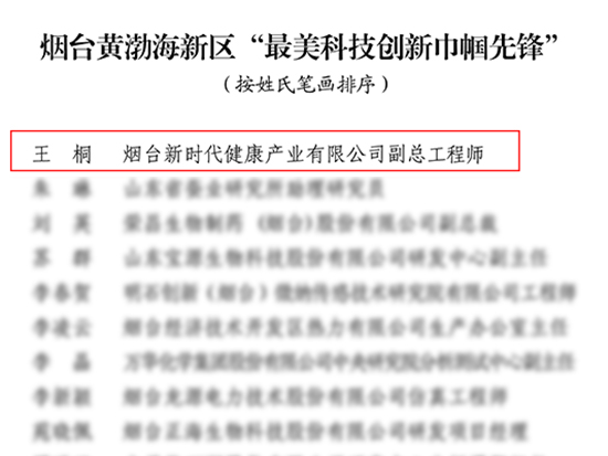 新時代集團下屬煙臺健康公司副總工程師王桐獲評黃渤海新區(qū)“最美科技創(chuàng)新巾幗先鋒”稱號 |