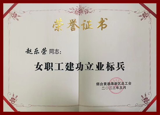 煙臺日化公司職工趙樂榮喜獲“煙臺黃渤海新區(qū)女職工建功立業(yè)標兵”稱號 |