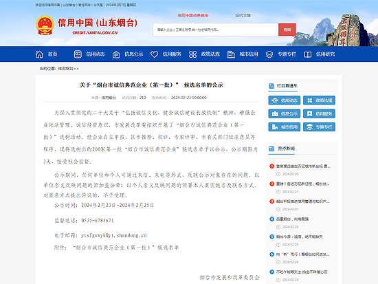 3月5日,煙臺(tái)市發(fā)展和改革委員會(huì)舉辦“親清發(fā)改會(huì)客廳”,邀請(qǐng)有代表性的企業(yè)參會(huì),暢通企業(yè)問題反映渠道。會(huì)上發(fā)布了煙臺(tái)市2024年首批誠信典范企業(yè)名單,煙臺(tái)新時(shí)代健康產(chǎn)業(yè)有限公司被(以下簡(jiǎn)稱:煙臺(tái)健康公司)選樹為第一批“煙臺(tái)市誠信典范企業(yè)”。