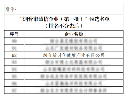 煙臺(tái)健康公司獲評(píng)“煙臺(tái)市2024年首批誠信典范企業(yè)”榮譽(yù)稱號(hào) |