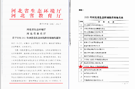2021年12月24日,中國環(huán)保衡水公司又迎來了河北省生態(tài)環(huán)境廳和河北省教育廳聯(lián)合授予的2021年“河北省生態(tài)環(huán)境教育基地”的榮譽(yù)稱號。
