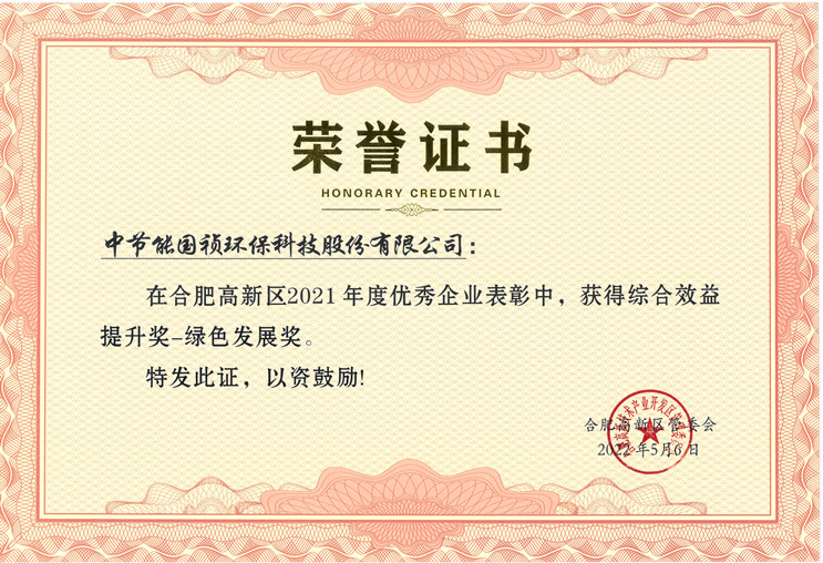 近日,合肥高新區(qū)召開2022年企業(yè)表彰大會,對在2021年度為高新區(qū)經(jīng)濟(jì)發(fā)展做出突出貢獻(xiàn)的優(yōu)秀企業(yè)和個人進(jìn)行了表彰。中節(jié)能國禎設(shè)備制造事業(yè)部在本次表彰中獲“綜合效益提升獎-綠色發(fā)展獎”。