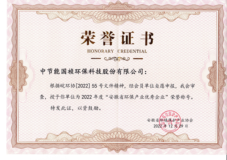中節(jié)能國(guó)禎榮獲“安徽省環(huán)保產(chǎn)業(yè)優(yōu)秀企業(yè)” |
