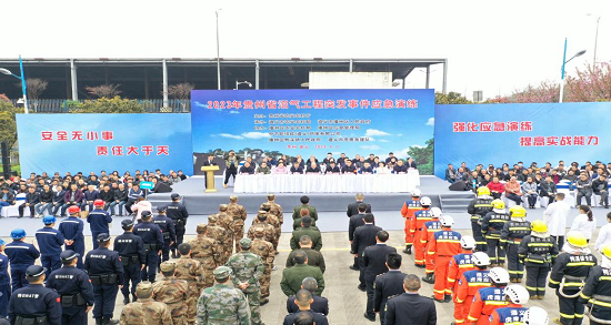 安全無小事,責任大于天。為增強沼氣安全突發(fā)事件應急防范意識和提高沼氣安全應急處置能力,4月1日,由貴州省農(nóng)業(yè)農(nóng)村廳主辦,遵義市農(nóng)業(yè)農(nóng)村局、播州區(qū)人民政府承辦,播州區(qū)農(nóng)業(yè)農(nóng)村局、應急管理局等部門協(xié)辦的2023年貴州省沼氣工程突發(fā)事件應急演練,在中節(jié)能綠碳(遵義)環(huán)保有限公司舉辦。貴州省農(nóng)業(yè)農(nóng)村廳黨組成員、副廳長張元鑫作為本次應急演練總指揮長,現(xiàn)場指揮演練并發(fā)表講話。貴州省農(nóng)業(yè)農(nóng)村廳相關負責人及貴州省各市(州)農(nóng)業(yè)農(nóng)村局分管領導、沼氣池安全工作負責人,播州區(qū)應急管理局、消防救援大隊等200余人實地觀摩演練。