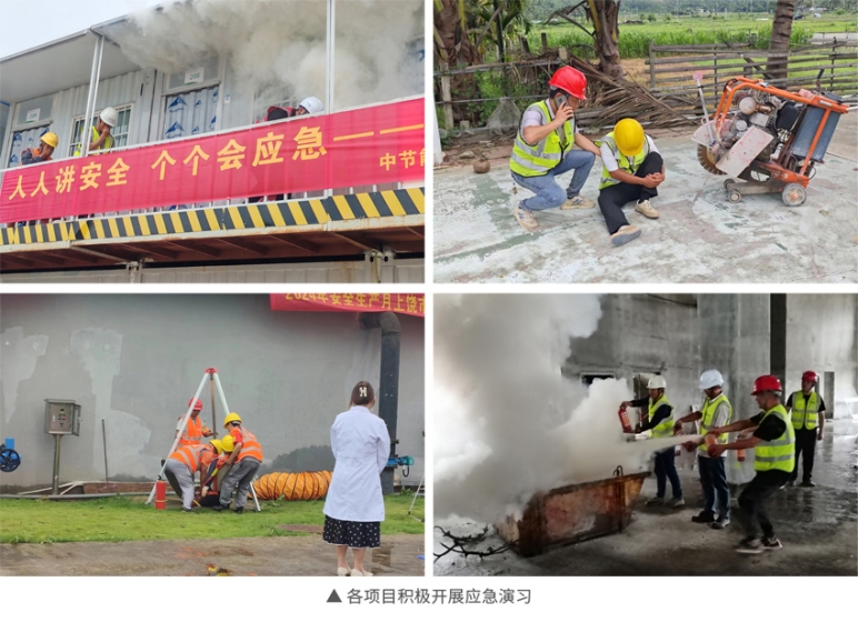 認真開展消防應(yīng)急演習(xí),筑牢安全防線。為守好安全最后一道防線,不斷提升應(yīng)對各類突發(fā)事件的處置能力,今年“安全生產(chǎn)月”期間,各項目分別開展了火災(zāi)事故現(xiàn)場演練、中毒窒息現(xiàn)場處置和消防應(yīng)急疏散演練等。以演促練、以練筑防,全面提升突發(fā)事件應(yīng)急處置能力,全員覆蓋提升本質(zhì)安全水平,扎實開展安全生產(chǎn)相關(guān)活動。同時,各單位結(jié)合安全生產(chǎn)月工作要求,積極開展安全生產(chǎn)大排查大整治活動,積極防范安全風(fēng)險,及時消除隱患。
