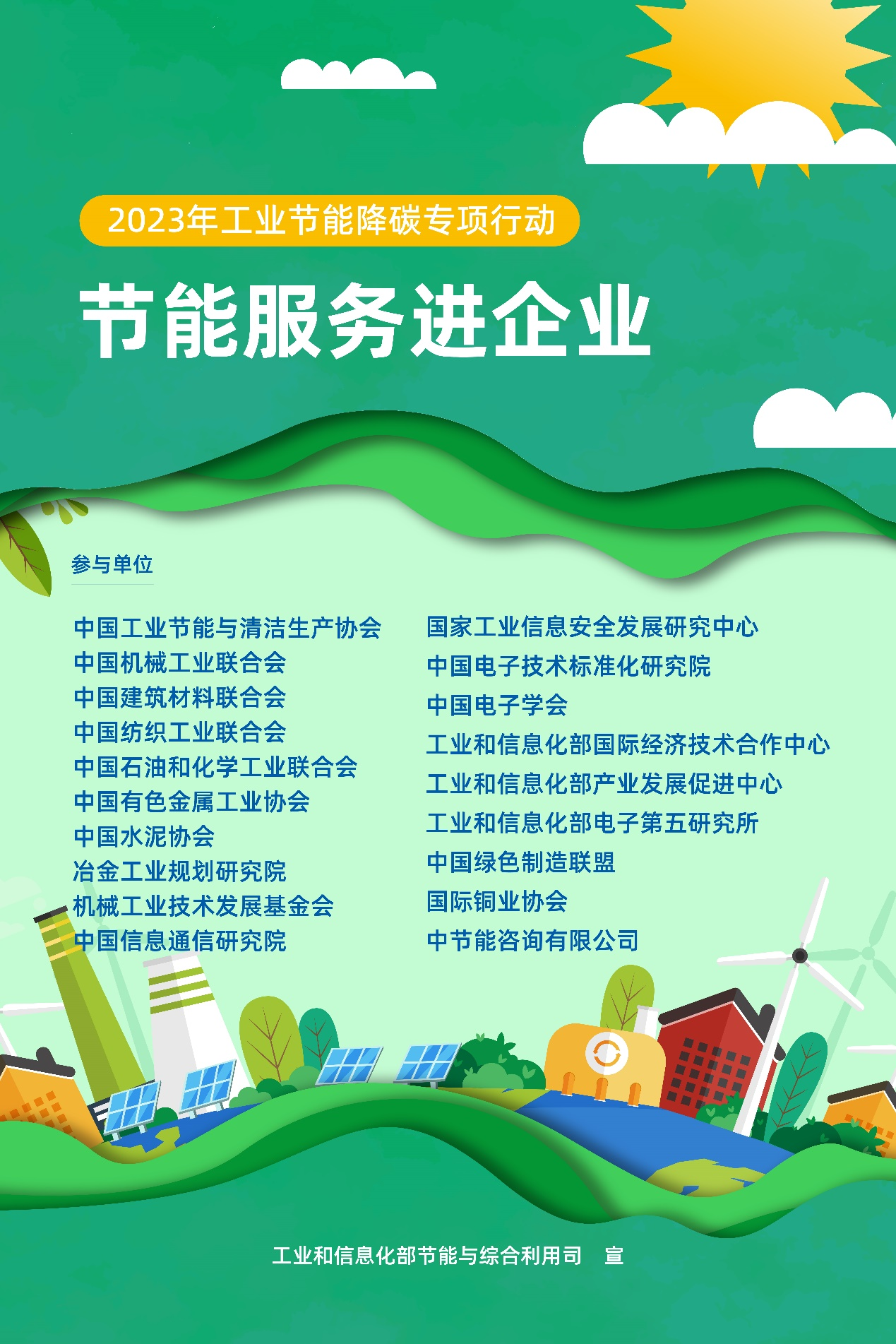 2月23日,工業(yè)和信息化部節(jié)能與綜合利用司正式開啟2023年度工業(yè)和信息化領(lǐng)域“節(jié)能服務(wù)進企業(yè)”活動。節(jié)能與綜合利用司主要負責(zé)同志參加會議并講話,相關(guān)行業(yè)協(xié)會、科研院所、重點企業(yè)代表參加。研究中心所屬中節(jié)能咨詢執(zhí)行董事逄錦福參會并發(fā)言。 會上,節(jié)能與綜合利用司介紹了新形勢下進一步推動工業(yè)節(jié)能降碳相關(guān)工作考慮,對高質(zhì)量做好2023年度“節(jié)能服務(wù)進企業(yè)”工作提出要求。參會單位進行了相關(guān)工作交流,并共同發(fā)布2023年“節(jié)能服務(wù)進企業(yè)”活動倡議書和宣傳海報。 “節(jié)能服務(wù)進企業(yè)”活動是推動先進節(jié)能技術(shù)、裝備、產(chǎn)品等與企業(yè)有效對接,促進企業(yè)節(jié)能降耗、降本增效的有效途徑。未來,在節(jié)能與綜合利用司的支持指導(dǎo)下,研究中心將帶領(lǐng)中節(jié)能咨詢積極開展“節(jié)能服務(wù)進企業(yè)”活動,通過技術(shù)交流、考察對接、節(jié)能診斷等方式,引導(dǎo)行業(yè)企業(yè)研發(fā)推廣先進節(jié)能降碳新技術(shù)、新工藝,創(chuàng)新節(jié)能工作新模式、新方法,為企業(yè)綠色轉(zhuǎn)型注入新動能,共同推進工業(yè)和信息化領(lǐng)域綠色低碳轉(zhuǎn)型和高質(zhì)量發(fā)展。