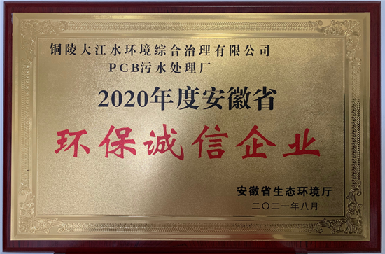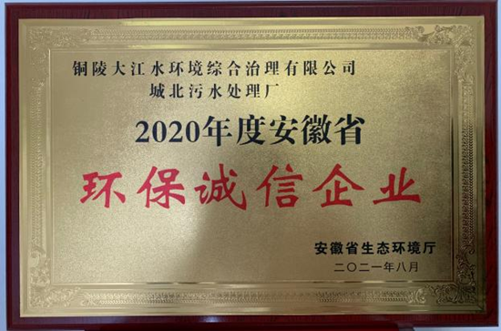 銅陵大江水環(huán)境綜合治理有限公司榮獲“安徽省環(huán)保誠信企業(yè)”稱號(hào) |