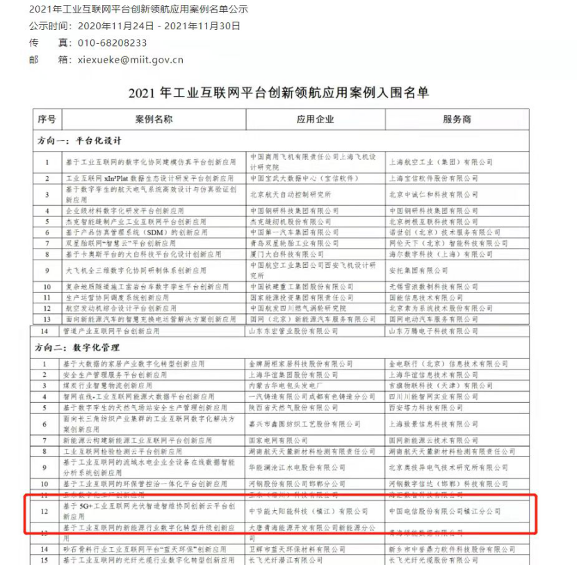 太陽能鎮(zhèn)江公司上榜工信部工業(yè)互聯(lián)網(wǎng)平臺(tái) 創(chuàng)新領(lǐng)航應(yīng)用案例 |