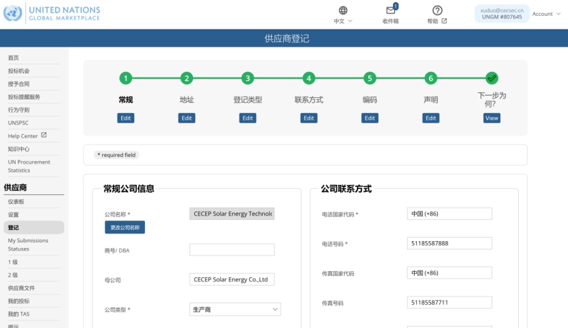 近日,太陽能鎮(zhèn)江公司成功注冊為聯(lián)合國采購一級供應(yīng)商,可參加世界貿(mào)易組織、聯(lián)合國項目事務(wù)署、貿(mào)易中心、亞行等聯(lián)合國22個組織機(jī)構(gòu)的招投標(biāo)。此次成為聯(lián)合國采購供應(yīng)商,是企業(yè)自身軟實力、影響力的體現(xiàn),為增加企業(yè)知名度、拓展國際市場奠定了堅實基礎(chǔ)。