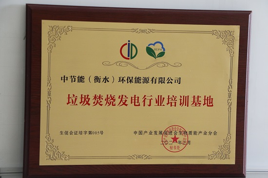 2021年4月20日,中國環(huán)保衡水公司榮獲中國產(chǎn)業(yè)發(fā)展促進會頒發(fā)的首批“垃圾焚燒發(fā)電行業(yè)培訓基地”榮譽稱號。