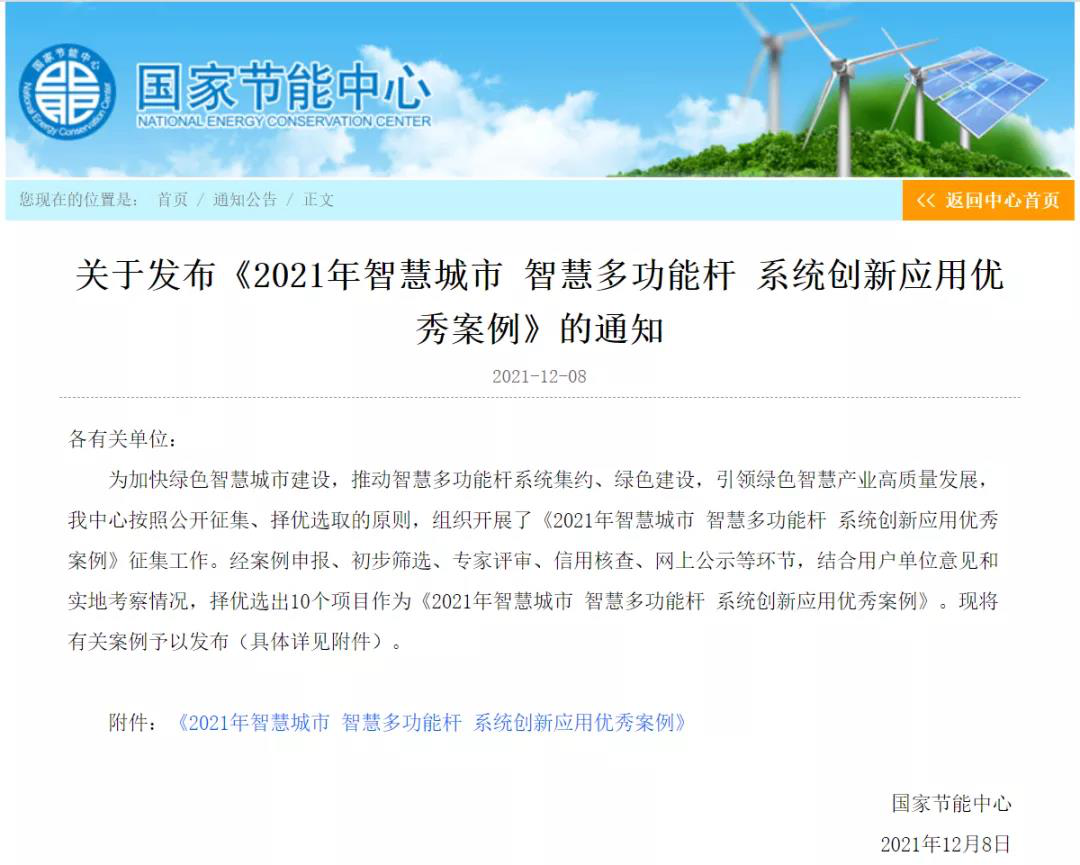 國(guó)家節(jié)能中心為推動(dòng)綠色智慧城市建設(shè),規(guī)范城市智能多功能燈桿系統(tǒng)的總體技術(shù)要求,提供智能多功能燈桿系統(tǒng)的規(guī)劃、設(shè)計(jì)、建設(shè)與運(yùn)維技術(shù)參考,公開(kāi)征集《智慧城市智能多功能燈桿系統(tǒng)創(chuàng)新應(yīng)用優(yōu)秀案例》。最終入選的案例需集中滿足了兩個(gè)條件:緊緊圍繞污染防治攻堅(jiān)戰(zhàn)、藍(lán)天保衛(wèi)戰(zhàn)等國(guó)家發(fā)展戰(zhàn)略以及推動(dòng)解決了技能技術(shù)推廣難的問(wèn)題,并且取得了顯著的經(jīng)濟(jì)、社會(huì)和環(huán)境效益,能助力我國(guó)節(jié)能環(huán)保事業(yè)開(kāi)辟新途徑。