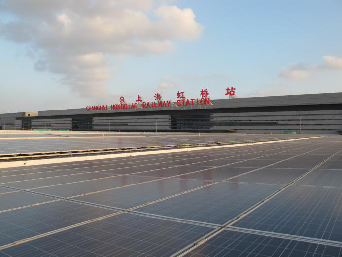 2010年7月17日,中節(jié)能京滬高鐵上海虹橋客運(yùn)站6.688兆瓦屋頂光伏發(fā)電項(xiàng)目正式并網(wǎng)發(fā)電,不僅是當(dāng)時(shí)亞洲最大的單體建筑光伏一體化項(xiàng)目,也是中國節(jié)能與鐵路部門合作建成的最大的鐵路客站光伏電站一體化項(xiàng)目,成為我國太陽能光伏發(fā)電與城市建筑一體化領(lǐng)域的新標(biāo)志和里程碑。該項(xiàng)目對于促進(jìn)太陽能開發(fā)利用、加快綠色鐵路建設(shè)具有十分重要的示范意義。