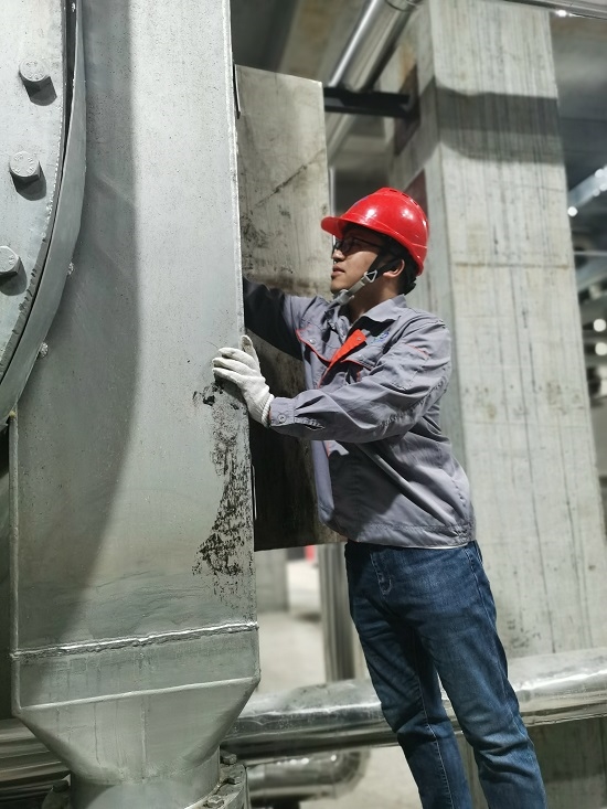 2019年10月,施工過程中由于有兩段刮板機必須在垃圾倉內(nèi)作業(yè),當(dāng)時倉內(nèi)氣體檢測儀顯示各項有毒有害氣體指數(shù)均超報警值,尤其一氧化碳濃度已超檢測儀量程,倉內(nèi)密閉溫度較高,粉塵濃度大,施工作業(yè)環(huán)境極為惡劣。但為了搶工期、趕進(jìn)度,在做好各項安全措施及詳細(xì)施工方案報審后,他克服困難,帶領(lǐng)其他施工人員,佩戴專業(yè)的防毒面罩進(jìn)入垃圾倉內(nèi)施工,全力保障項目工期順利推進(jìn)。