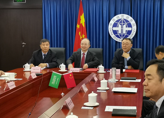 在阿拉伯語(yǔ)中,“沙特”是“幸福”的意思,“阿拉伯”則指“沙漠”,“沙特阿拉伯”意為“幸福的沙漠”。中國(guó)地礦人在這片“幸福的沙漠”中堅(jiān)守、耕耘,用辛勤的汗水滋育出了茁壯秀美的“沙漠之花”。 2020年10月18日,中國(guó)地質(zhì)調(diào)查局、中國(guó)地礦與沙特地質(zhì)調(diào)查局地球化學(xué)勘查合作授標(biāo)儀式在線舉行。中國(guó)地質(zhì)調(diào)查局局長(zhǎng)鐘自然與沙特工礦大臣、投資大臣、交通大臣等出席,中國(guó)地礦董事長(zhǎng)宋永祺出席并在授標(biāo)書(shū)上簽字。