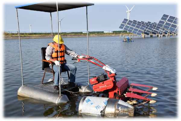 繁忙的工作反而促使了思想的迸發(fā)。劉加勇在工作中遇到困難總會思考更為先進的工作方式。水面上的雜草為檢修工作帶來了不小的麻煩、每一塊板子維修更換又異常繁雜,如何更加便捷安全地進行維修更換、提高工作效率成了劉加勇的一個“心病”。工作中的挑戰(zhàn)轉化為思維的火花,迸發(fā)出勞動的激情。劉加勇帶領團隊成功研制了“一種太陽能組件跟蹤支架吊裝工具”和“一種太陽能組件跟蹤支架支撐工具”用于主軸更換時支撐農(nóng)門架,解決了運維時的效率低下問題;“一種水上打草機”能夠以快捷,高效的方式清潔水面,大大減少了電站兩千六百畝的海面除草時間;“一種太陽能光伏組件驅(qū)鳥裝置”防止了海鳥對發(fā)電設備的侵擾,保障了光伏板的安全性和發(fā)電效率。在原有“一種水上打草機”的基礎上,劉加勇進一步改良,又申請了“一種載人水上打草機”專利,目前這幾項工具均獲得了國家級的實用新型專利授權。 吃水不忘挖井人,劉加勇多年來還積極協(xié)助團隊獲得數(shù)項發(fā)明和實用新型專利。協(xié)助團隊發(fā)明的“一種組件支架結構”獲得2013年國家發(fā)明專利;“一種抗PID電路及其監(jiān)控裝置”獲得2013年國家實用新型專利。這些科技研發(fā)成果讓東臺電站真正成為了以科技創(chuàng)新帶動企業(yè)發(fā)展的優(yōu)秀企業(yè)。“我一直相信創(chuàng)新不是高科技人才的專屬,每個平凡的人在自己的崗位都可以創(chuàng)新,只要留心、用心、細心那些不起眼的事情都可以成為新技術的萌芽。”劉加勇信心滿滿的說道。