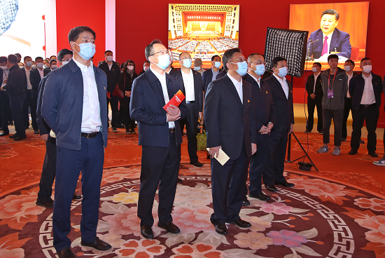 大家共同參觀了室外展區(qū)、序廳、中央綜合展區(qū)、地方展區(qū)、展望展區(qū)的6000多項(xiàng)展覽要素,在一件件實(shí)物模型、一段段生動(dòng)視頻、一幅幅圖片圖表中感受黨和國(guó)家發(fā)展進(jìn)程中這極不尋常、極不平凡的10年。集團(tuán)公司位于江蘇省東臺(tái)市的“風(fēng)光漁”互補(bǔ)產(chǎn)業(yè)基地、甘肅省酒泉市風(fēng)光電基地項(xiàng)目和參與制作的大氣環(huán)境質(zhì)量改善展示平臺(tái)亮相展覽,令觀展人員倍感振奮和自豪,大家紛紛感嘆,集團(tuán)公司近年來取得發(fā)展和成績(jī),根本在于以習(xí)近平同志為核心的黨中央的堅(jiān)強(qiáng)領(lǐng)導(dǎo),在于習(xí)近平新時(shí)代中國(guó)特色社會(huì)主義思想的科學(xué)指引。
