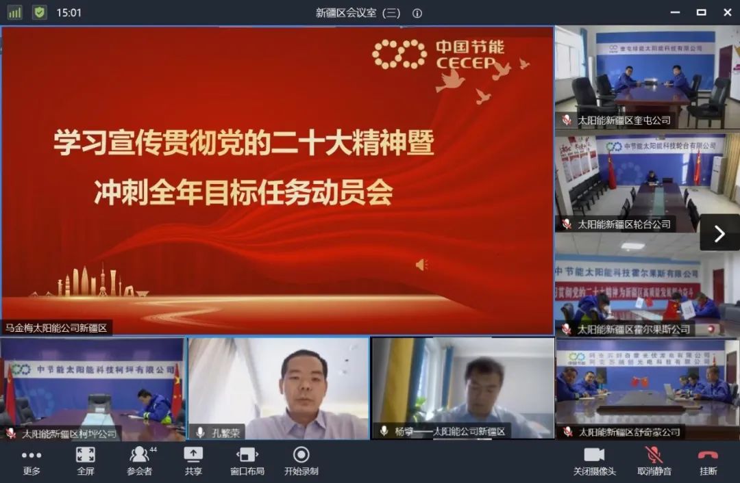 黨的二十大勝利召開以來,太陽能新疆區(qū)黨總支切實把思想和行動統(tǒng)一到黨的二十大決策部署上來,迅速掀起學習宣傳貫徹熱潮,堅持把“為何學、怎么學、怎么做”貫穿到新疆區(qū)工作的各方面、全過程,通過領導干部帶頭學、層層發(fā)動廣泛學、豐富載體創(chuàng)新學、結合實踐深入學,做到學思用貫通、知信行統(tǒng)一,以實干實績檢驗學習貫徹成效。