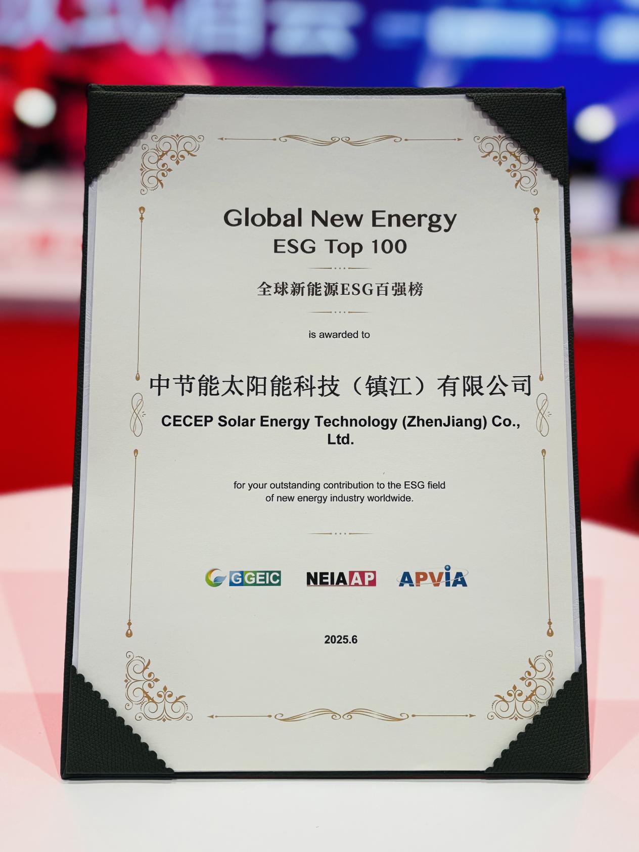 近日,在上海舉行的第十八屆SNEC光伏展期間,太陽能鎮(zhèn)江公司憑借在環(huán)境、社會及治理領(lǐng)域的扎實實踐與積極成效,成功入選“Global New Energy ESG Top 100全球新能源ESG百強榜”,其可持續(xù)發(fā)展努力獲得國際權(quán)威機構(gòu)高度認可。