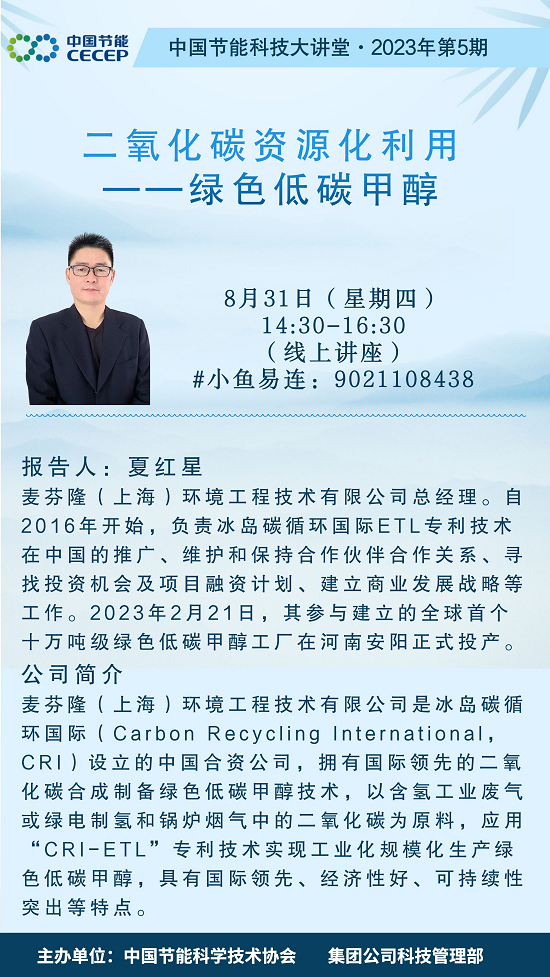 為加強(qiáng)綠色低碳技術(shù)交流,促進(jìn)戰(zhàn)略性新興領(lǐng)域和行業(yè)前沿領(lǐng)域產(chǎn)業(yè)技術(shù)合作,集團(tuán)公司科技管理部、中國(guó)節(jié)能科協(xié)特邀請(qǐng)麥芬隆(上海)環(huán)境工程技術(shù)有限公司(以下簡(jiǎn)稱(chēng)麥芬隆公司)總經(jīng)理夏紅星先生于2023年8月31日作科技大講堂專(zhuān)題講座?,F(xiàn)將有關(guān)事項(xiàng)通知如下: