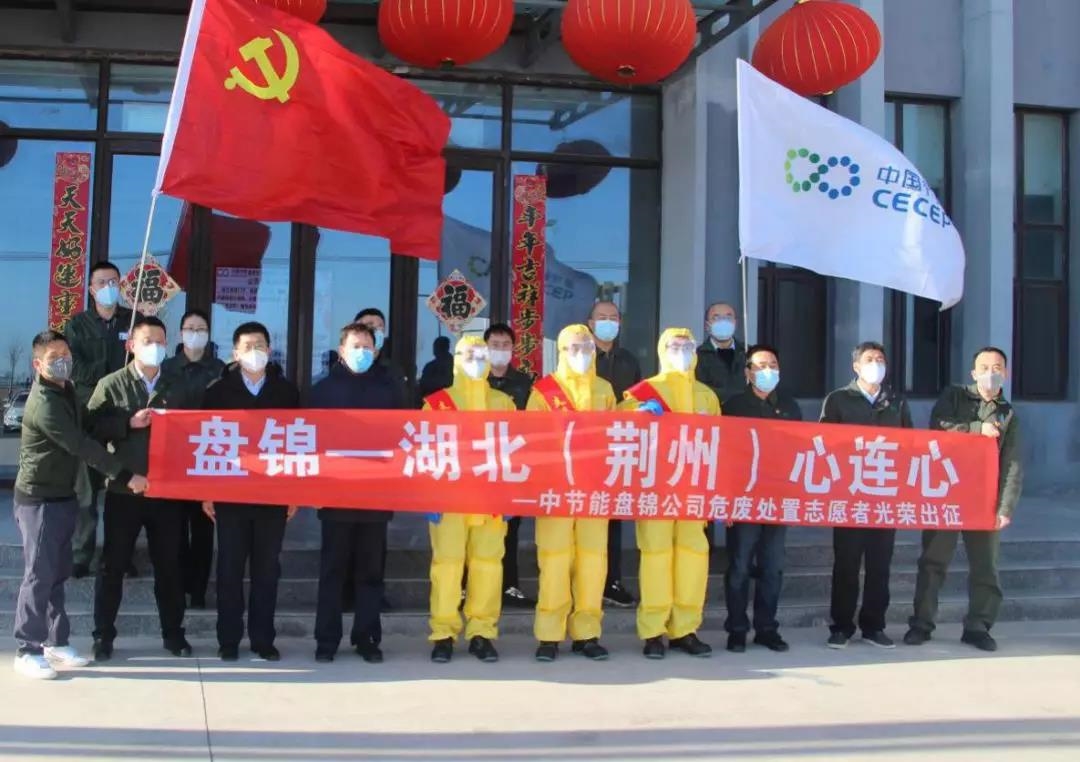 2月3日,在將近2000公里之外的盤錦,中節(jié)能(盤錦)清潔技術發(fā)展有限公司(以下簡稱“盤錦公司”)正在舉辦一場隆重而又特別的儀式——“壯行荊州”,為公司市場部負責人左浩和生產部職工郝永祿、曾利學三名志愿者,即將奔赴湖北荊州中環(huán)環(huán)境治理有限公司(以下簡稱“荊州公司”)協(xié)助兄弟公司抗擊疫情送行。 “我們跟著共產黨員上抗疫前線,要像共產黨員一樣去戰(zhàn)斗!”