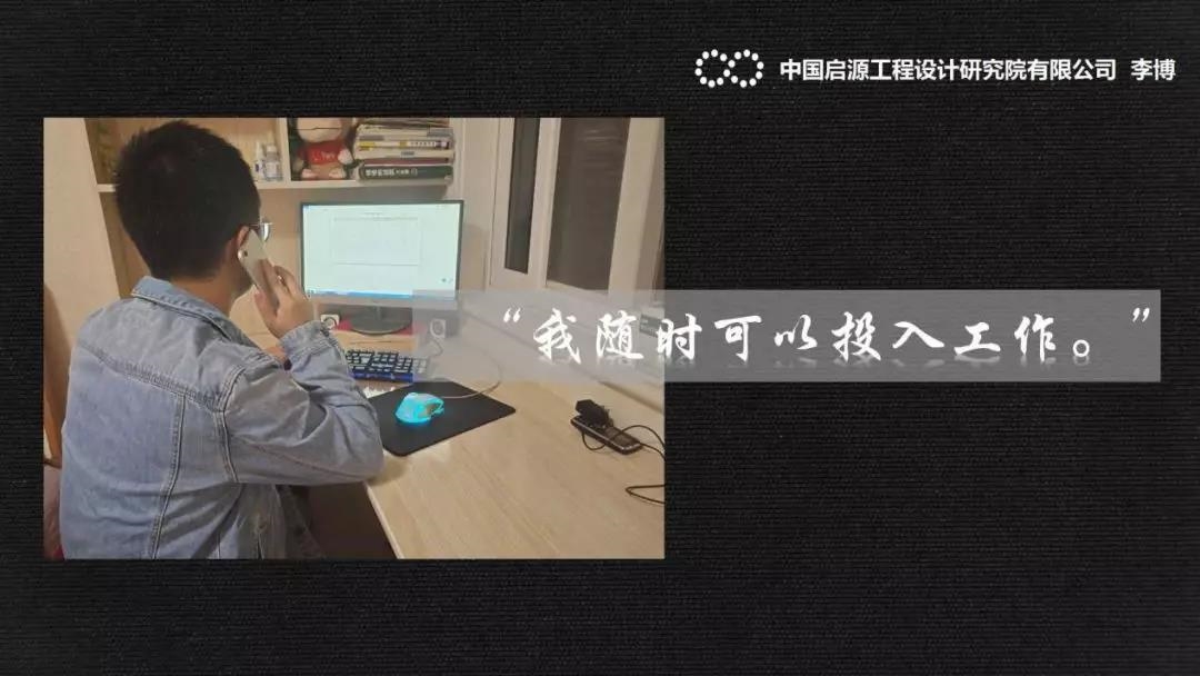 啟源設計BIM中心員工 向往 “有些工作,應付應付就行了,這么嚴峻的時期,哪還顧得上干的好不好”“人重要還是工作重要?非常時期,要非常對待”“不是延長假期嗎?有工作等上班了再說”,這些話,向往在一些地方經(jīng)常能聽人說起,但他總是一笑置之。工作十幾年來,他有自己的一套工作準則:“我們搞設計的人,要的就是嚴謹、細致、科學,如果都是應付的態(tài)度做工作,要出大問題。” 他的這套工作準則,一定程度上代表了啟源人、節(jié)能人的態(tài)度。在他眼中,只要在工作崗位上,就必定全力以赴。疫情出現(xiàn)以來,中國啟源雖然按照集團公司和當?shù)卣笱舆t了復工時間,但啟源人早已自覺在家上崗、在線上班,通過電話、微信等渠道積極與業(yè)主、客戶進行溝通,充分利用現(xiàn)有條件開展工作,并在工作中時刻以更高的標準和更嚴謹?shù)膽B(tài)度要求自己,確保高質(zhì)量的完成各項任務。 在抗擊疫情的過程中,中國啟源全體員工始終秉承著對客戶負責、對工作負責、對自身負責的態(tài)度,堅定信心、眾志成城、積極作為,在各自的崗位上發(fā)光發(fā)熱,抓生產(chǎn)、促防控,全力筑牢防控之墻,為打贏疫情防控阻擊戰(zhàn)貢獻力量! |