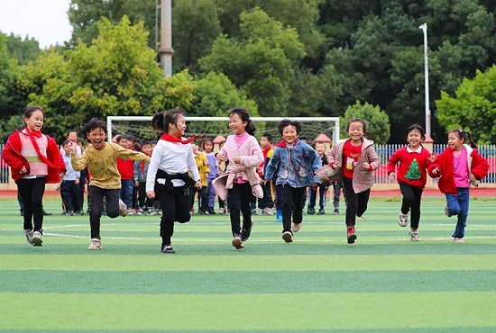 11月4日,在湖南省永州市新田縣雙碧小學(xué),孩子們在運(yùn)動場上做游戲。今年秋季學(xué)期開學(xué)以來,各地積極落實(shí)“雙減”政策,利用課后服務(wù)時(shí)間開展內(nèi)容豐富、形式多樣的課外活動,促進(jìn)學(xué)生全面發(fā)展。新華社發(fā)(劉貴雄 攝)